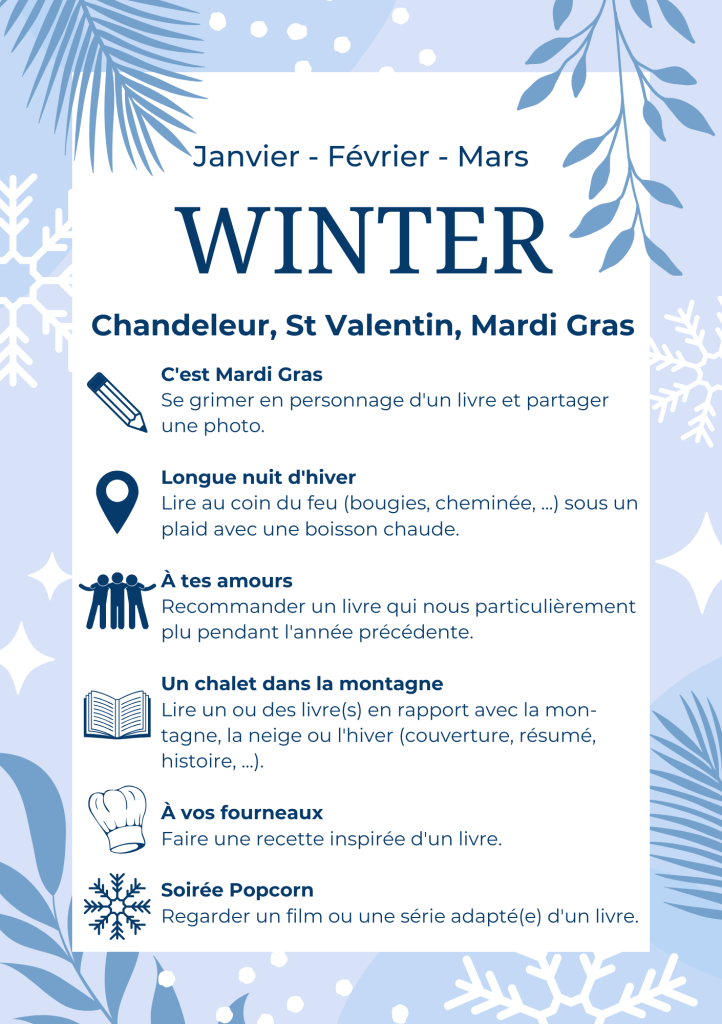 En 2026, on te prépare de nouveaux défis. Souviens toi qu’il n’y a aucune obligation à ces challenges et que le but et de te motiver à lire, voire à lire davantage. Ils permettent également d’échanger autour d’une thématique communes.