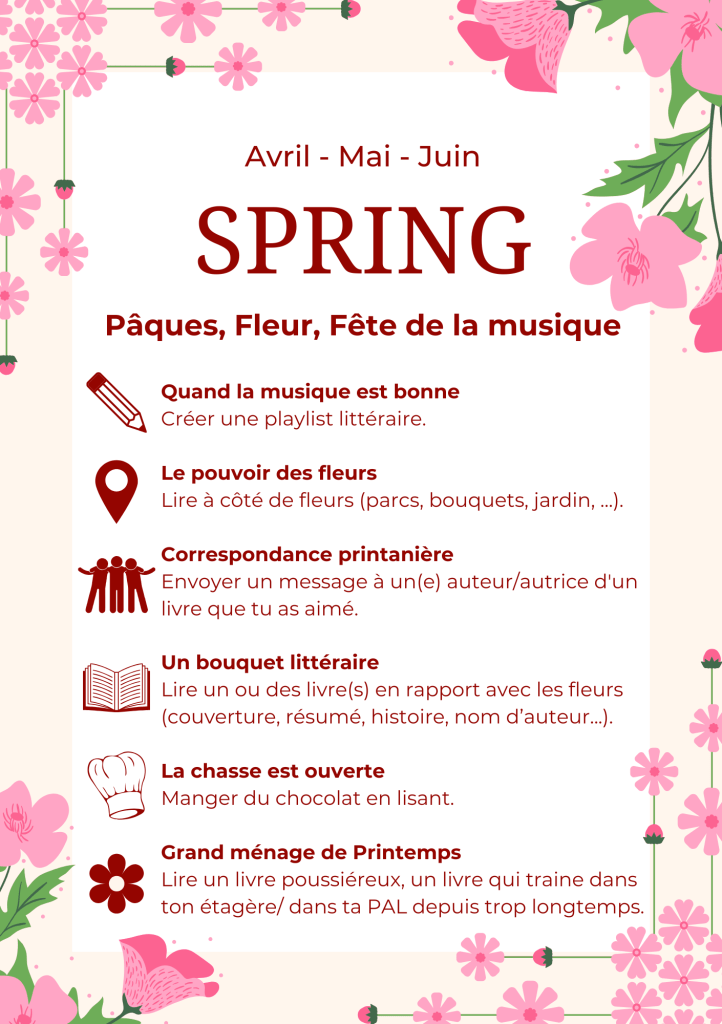 Qui dit printemps dit, fleurs ! C’est à cette saison qu’elles bourgeonnent voire commencent à pointer le bout de leur nez. Intègres-les dans tes lectures et profites de cette saison placée sous le signe du renouveau pour faire un peu de ménage dans ta bibliothèque.