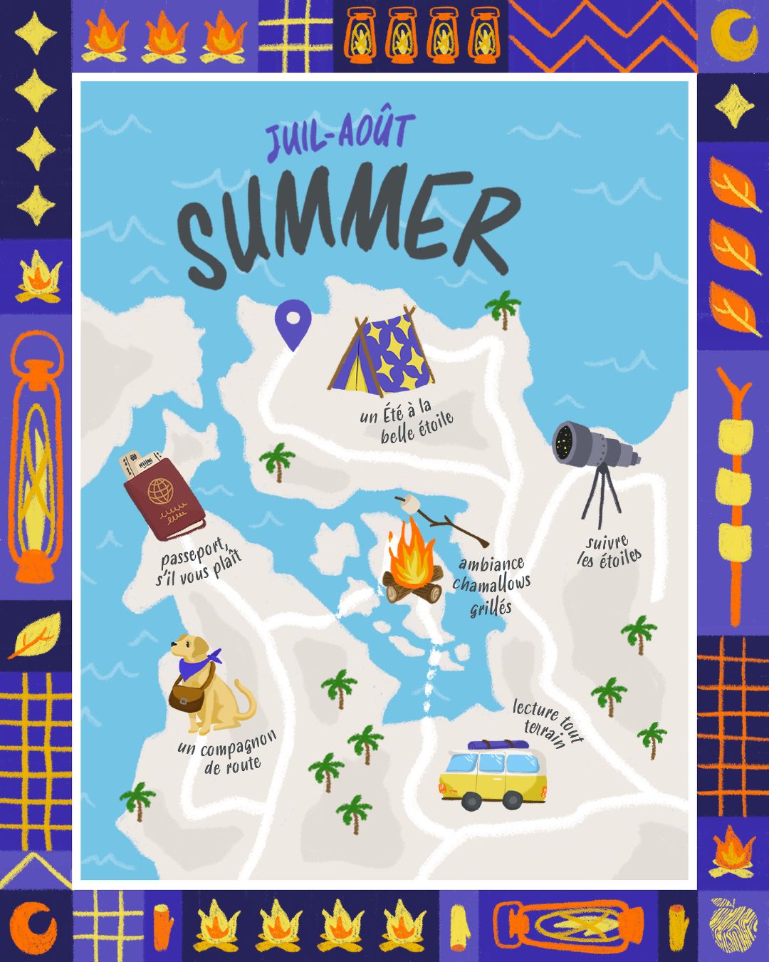 En été, après avoir passé la frontière, détend-toi sous le ciel étoilé, bien accompagné. Peut-être que les astres sauront t’orienter vers des chemins encore jamais explorés.